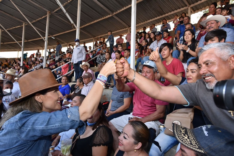 En Tepames, Margarita Moreno fue recibida con una gran fiesta que congregó a familias enteras de esta localidad en la monumental plaza de toros, donde tuvo el acercamiento acompañada de Riult Rivera, candidato a la diputación federal por el primer distrito y Martita Silva, candidata a diputada local por el tercer distrito.