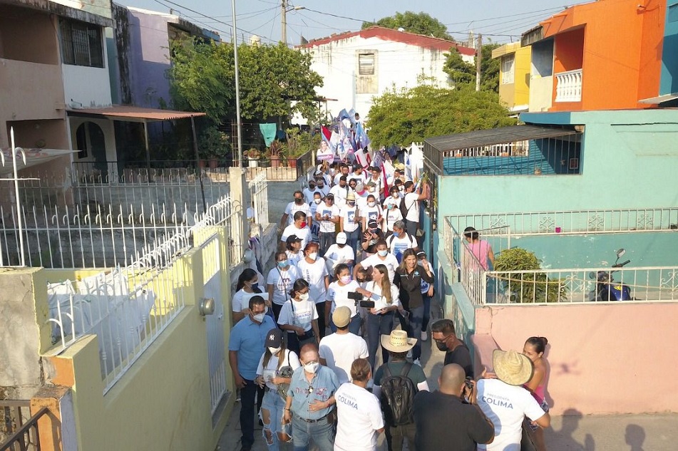 Margarita Moreno caminó firme en las calles y andadores de la colonia Infonavit La Estancia, donde fue recibida por mujeres y hombres que se han sumado de manera participativa a la campaña de la candidata a la alcaldía capitalina por la coalición "Va por Colima".