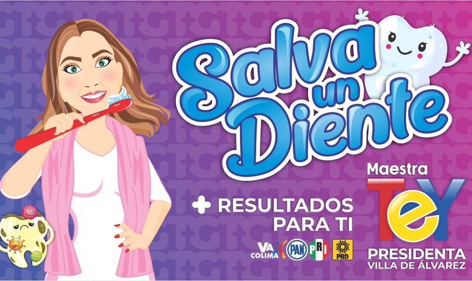 Villa de Álvarez, Col. Comprometida con la salud de niñas y niños del municipio, Tey Gutiérrez, candidata de la coalición Va por Colima, a la alcaldía de Villa de Álvarez presenta la campaña “Salva un Diente”, con la finalidad de dar a conocer el correcto uso del cepillo dental y una adecuada higiene.