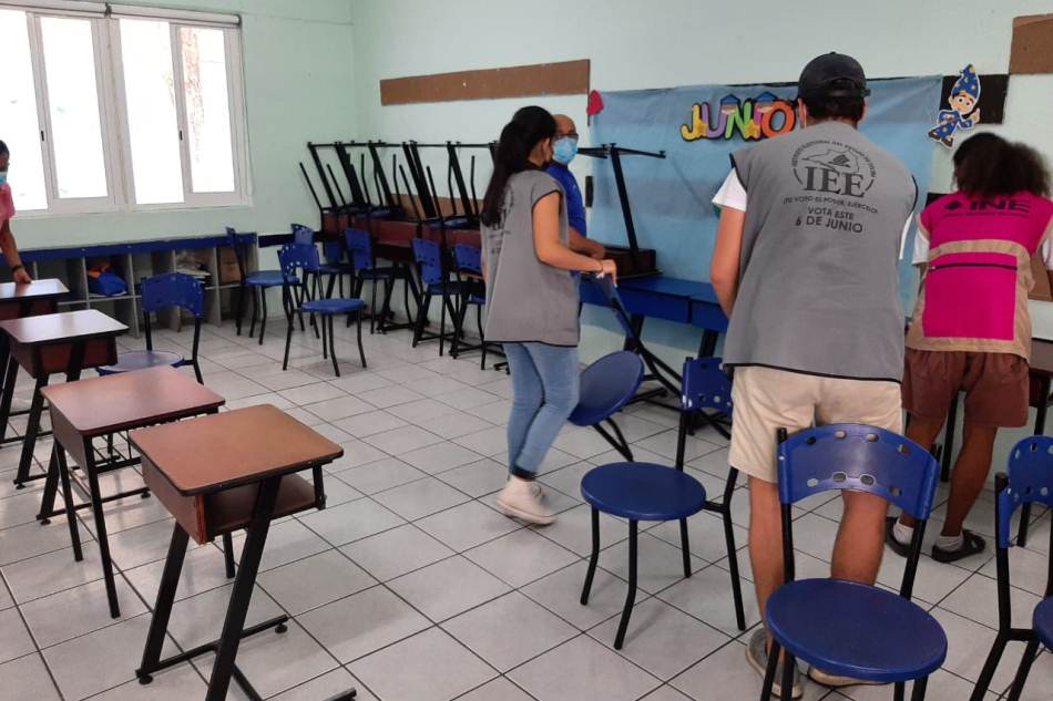 El Instituto Nacional Electoral (INE) y el Instituto Electoral del estado de Colima (IEEC). llevaron a cabo la limpieza y sanitización de los espacios públicos en donde se instalarán 979 Mesas Directiva de Casilla (MDC) para que la ciudadanía acuda a emitir su voto este 6 de junio con todas las medidas de higiene recomendadas por las autoridades de salud para mitigar el contagio de Covid-19.