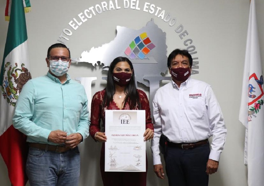 Luego de que el Consejo General del Instituto Electoral del Estado de Colima (IEE) llevara a cabo el cómputo estatal de la elección para la gubernatura, su presidenta Nirvana Rosales Ochoa, entregó la constancia de mayoría a Indira Vizcaíno Silva de la candidatura común Morena-Nueva Alianza como gobernadora electa.
