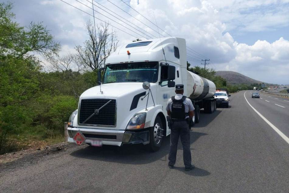 A la altura del kilómetro 014+000 de la carretera Colima-Entronque Tecomán, guardias nacionales interceptaron un tractocamión acoplado a un semirremolque tipo tanque que infringió el reglamento de tránsito, además los documentos para avalar la adquisición y traslado del combustóleo que transportaba presentaban inconsistencias.