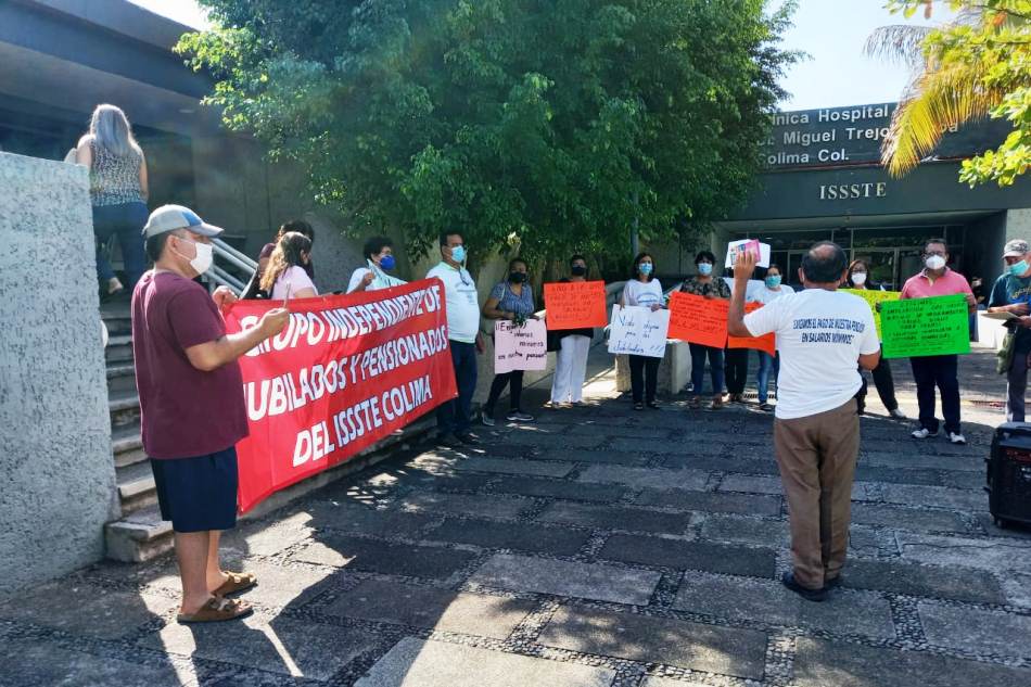 Integrantes de Grupo Independiente de Jubilados y Pensionados del ISSSTE, exigen a esta institución de salud en Colima, abasto en medicamentos, mejoras en el servicio médico, además que se les pague su jubilación en Salarios Mínimos.