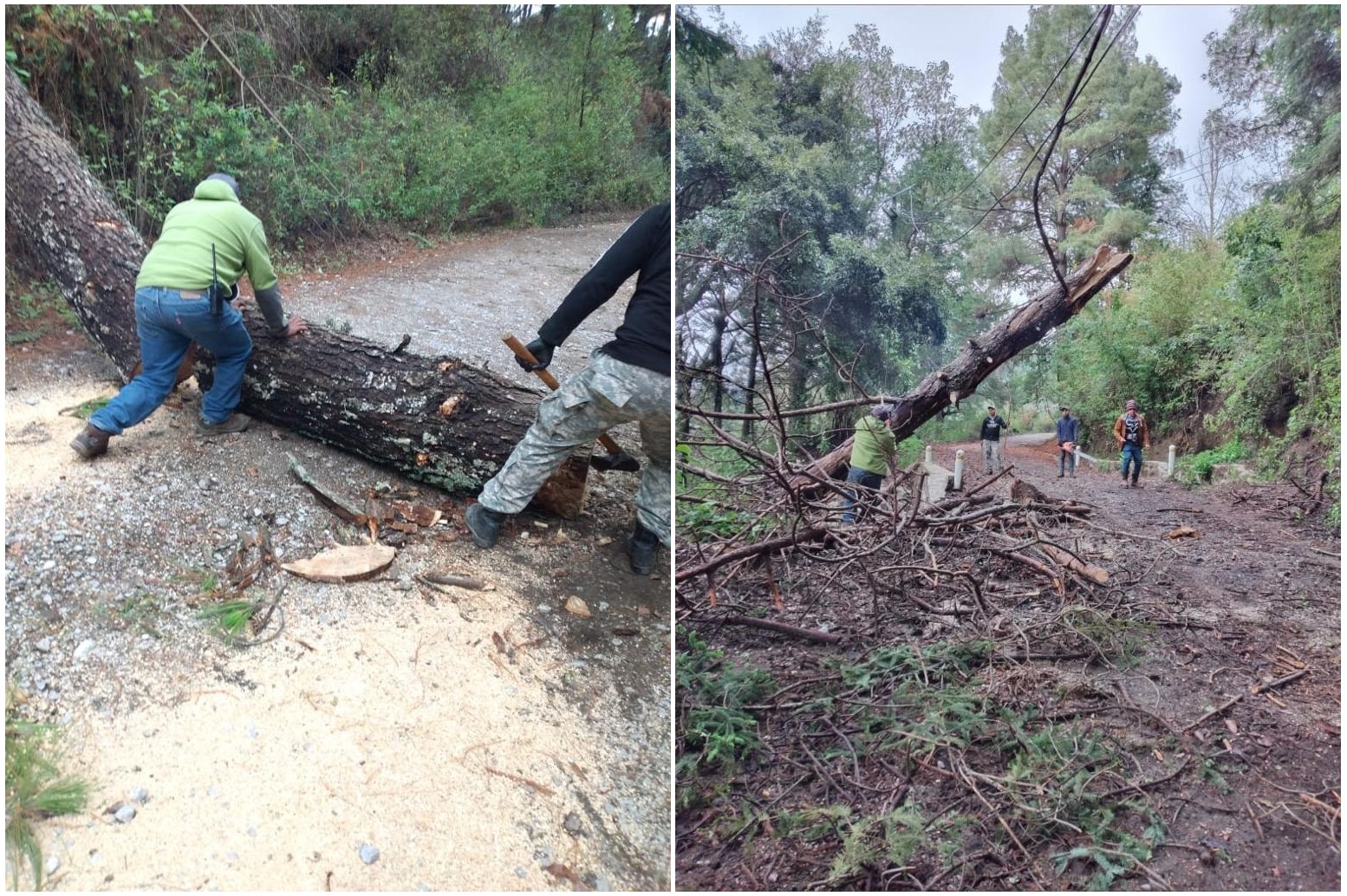 De acuerdo con la página de Facebook de Parque Nacional Volcán Nevado de Colima, la brigada del Parque Nacional trabajó estos días en la remoción de postes y corta de árboles que obstruían el tránsito por el camino llamado "Milanés" debido al paso de la tormenta Dolores.