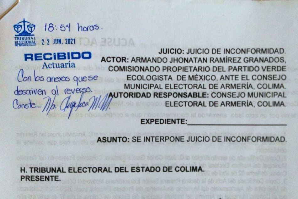 Armería, Col. La secretaria general del Partido Verde en Colima, Gabriela Benavides Cobos, dio a conocer que su partido presentó una impugnación por el proceso electoral de la alcaldía en el municipio de Armería, argumentando que hubo una mala clasificación en el conteo de los votos toda vez que la jornada electoral se llevó a cabo bajo una serie de anomalías.