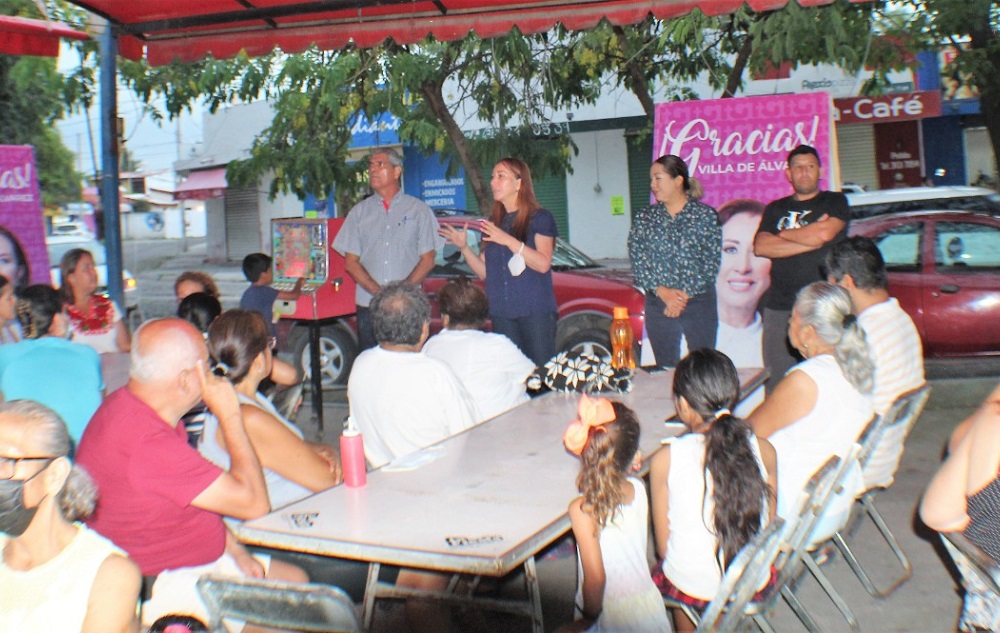 Acompañada en esta gira, por los diputados electos Miguel Ángel Galindo, Chuy Dueñas y Héctor Magaña y de amigas y amigos, líderes de las colonias y barrios; Tey Gutiérrez refrendó su compromiso de cercanía con los habitantes villalvarenses.