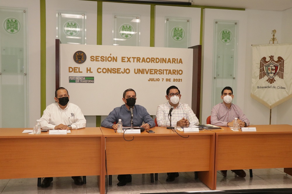 En sesión extraordinaria del Consejo Universitario, máximo órgano de gobierno de la Universidad de Colima, realizada este miércoles de manera virtual y presencial, se aprobaron siete acuerdos entre los que sobresalen la creación del plan de estudios de la Maestría en Bioética, el incremento salarial de este año y los lineamientos generales para un regreso gradual y responsable a las actividades presenciales.