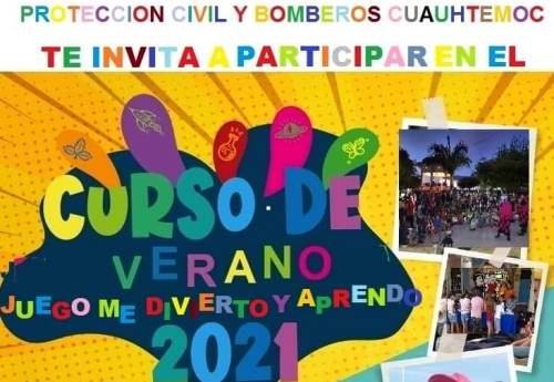 Cuauhtémoc, Col. Teniendo como propósito que los participantes obtengan conocimientos en materia de autoprotección y de protección civil, el dirección de Protección Civil y Bomberos del municipio de Cuauhtémoc, anunciar que del 19 al 23 de julio se llevará a cabo el curso de verano "Juego, Me Divierto y Aprendo", dirigido a la niñez de 7 a 12 años.