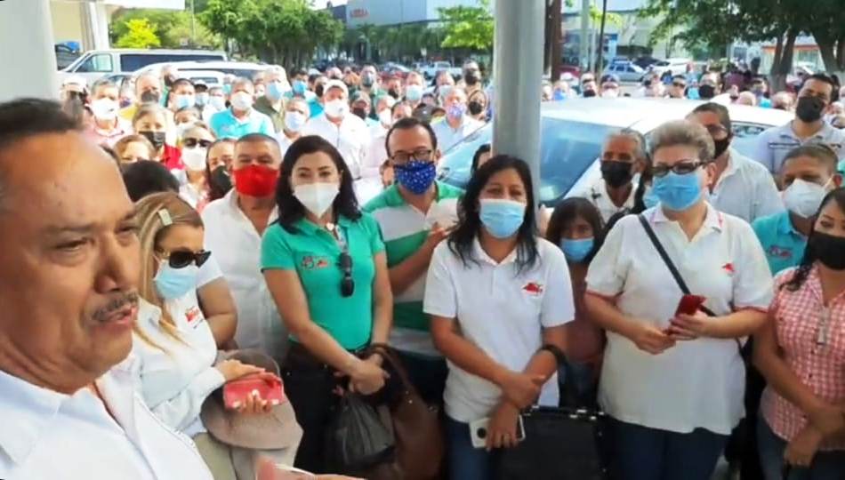 Acompañado por un nutrido grupo de trabajadores sindicalizados, Flores Castañeda ingresó a las instalaciones del IEE y al finalizar la audiencia, se dirigió a quienes se encontraban en el exterior, señalando que había ya concluido su participación en el proceso, donde se presentaron pruebas, hubo desahogo de las mismas, y ahora habrá que esperar la resolución que emita el Tribunal Electoral del Estado (TEE).