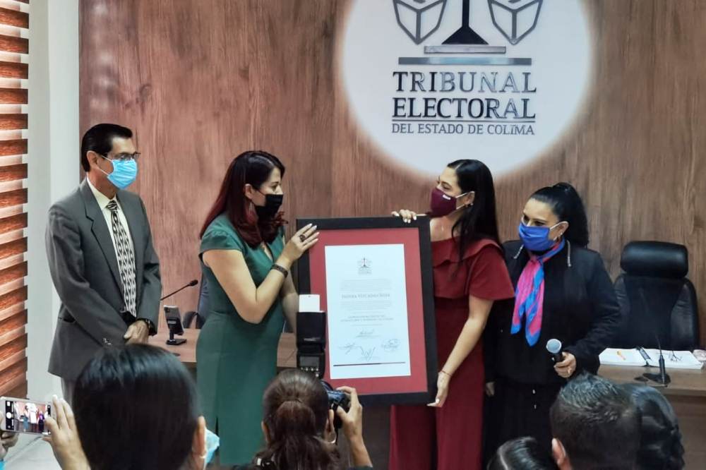 El Tribunal Electoral del Estado de Colima (TEE), por conducto de la magistrada presidenta Ana Carmen González Pimentel, entregó la constancia de Gobernadora Electa, a Indira Vizcaíno Silva, e hizo la declaratoria de validez de la elección.