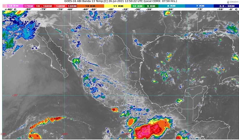 Para Manzanillo, se prevé cielo nublado, con temperatura de 32 grados y mínima de 25 grados. Alta probabilidad de que se presenten lluvias, principalmente por la tarde-noche. Viento con dirección sureste de 5 a 10 km/hr y ráfagas hasta de 18 km/hr.