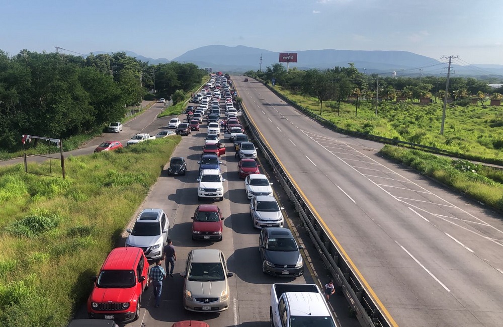 Este lunes por la tarde, integrantes de la Sección 39 del Sindicato Nacional de Trabajadores de la Educación (SNTE 39), nuevamente llevaron a cabo un bloqueo vehicular en la autopista Colima-Manzanillo, lo que provocó caos vial en la zona.