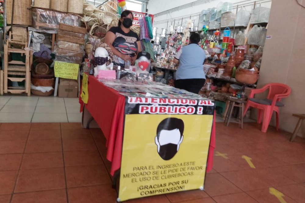 Mencionó que el protocolo que se trae es que, en los seis mercados municipales y 17 tianguis, hay un punto de control, con agua, gel, jabón y cubrebocas para quien no lo traiga. Y dentro del mercado los locatarios también lo están haciendo.