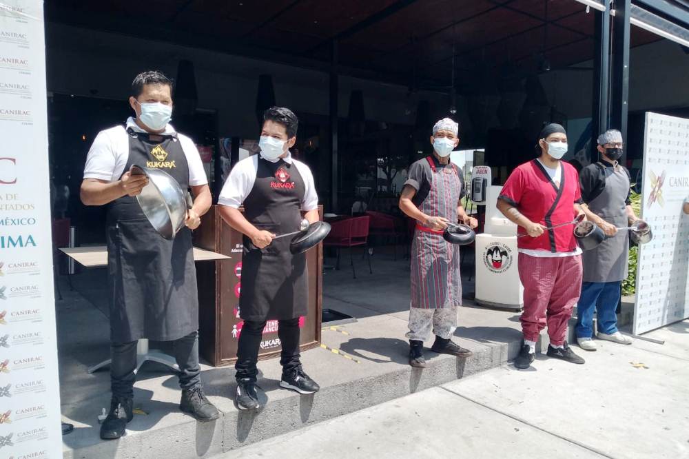 En alrededor de 100 restaurantes de Colima, Villa de Álvarez, Comala y Tecomán, afiliados a la Cámara Nacional de la Industria de Restaurantes y Alimentos Condimentados (CANIRAC), durante cinco minutos, hicieron sonar sus cazuelas, en el llamado “Cacerolazo”.