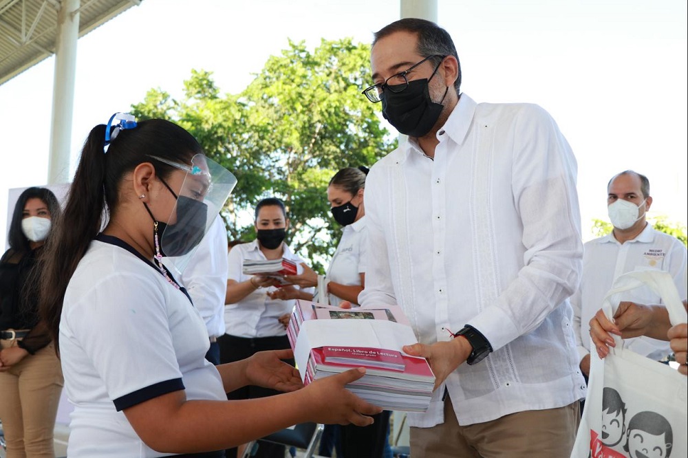 En la escuela primaria “Profr. Sergio Díaz Virgen”, el mandatario estatal indicó que hoy inician clases presenciales en el Estado 122 mil 141 estudiantes en 963 escuelas, de las cuales 118 pertenecen al Consejo Nacional de Fomento Educativo (Conafe). Además, anunció que se entregaron 913 mil 631 libros de texto gratuito, entre los que se incluyen 20 mil 670 libros de telebachillerato.