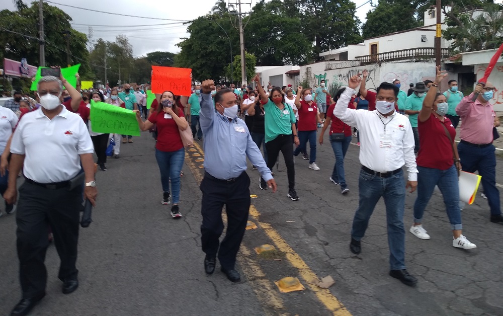 Al grito de “que nos paguen”, cientos de trabajadores pertenecientes al Sindicato de Trabajadores al Servicio del Gobierno del Estado (STSGE) marcharon hacia Casa de Gobierno, para exigir al gobernador del estado, José Ignacio Peralta Sánchez la segunda quincena de agosto que se les adeuda, así como que se les garantice el pago en tiempo y forma de su salario en los próximos meses.