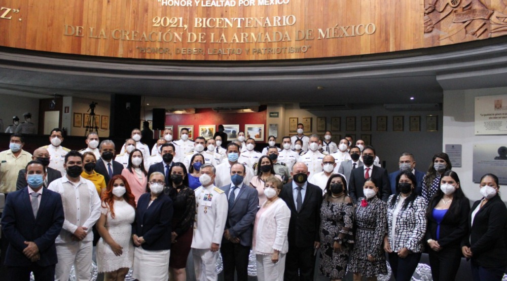 En Sesión Solemne, la LIX Legislatura, en un acto de reconocimiento a la Armada de México por sus labores ofrecidas en todo el país, y en particular a Colima, se develó la leyenda, en letras en color dorado, “2021, Bicentenario de la creación de la Armada de México Honor, Deber, Lealtad y Patriotismo”.