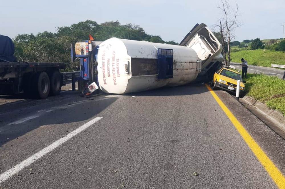 En el percance se vieron involucrados un tráiler y un taxi con placas de circulación de Colima, desconociéndose aún las causas que provocaron el impacto entre ambos vehículos.