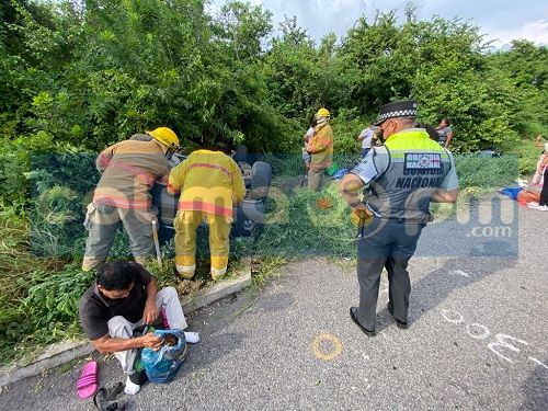 Al arribar al lugar, paramédicos de la Cruz Roja Mexicana, atendió a ocho de los tripulantes quienes presentaron lesiones leves, no requiriendo traslado.