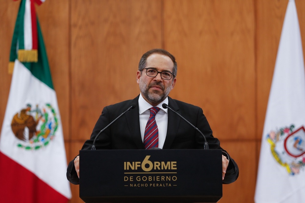 Desde el remodelado Salón Gobernadores de Palacio de Gobierno, Ignacio Peralta dijo que, a pesar de lo anterior, su administración logró impulsar temas trascendentes y sentar las bases para enfrentar estos retos, siendo fundamental fortalecer el estado de derecho y la no impunidad.