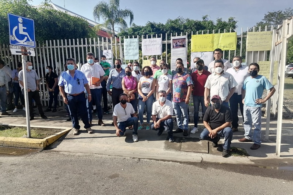 Un nutrido de trabajadores pertenecientes a Misiones Culturales se manifestaron en el exterior de las oficinas de la Secretaría de Educación de Colima exigiendo certeza laboral, principalmente en el corrimiento y entrega de plazas.