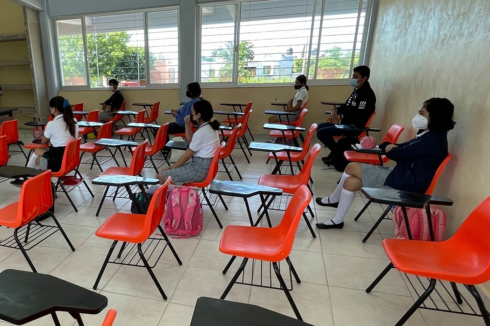 Señaló que la constante del modo de contagio en escuelas ha sido en los momentos del desayuno cuando se retiran el cubrebocas en espacios cerrados o sin la distancia de 1.5 metros. Otro momento identificado es al compartir vehículos sin uso de cubrebocas y con aire acondicionado sin ventilación.
