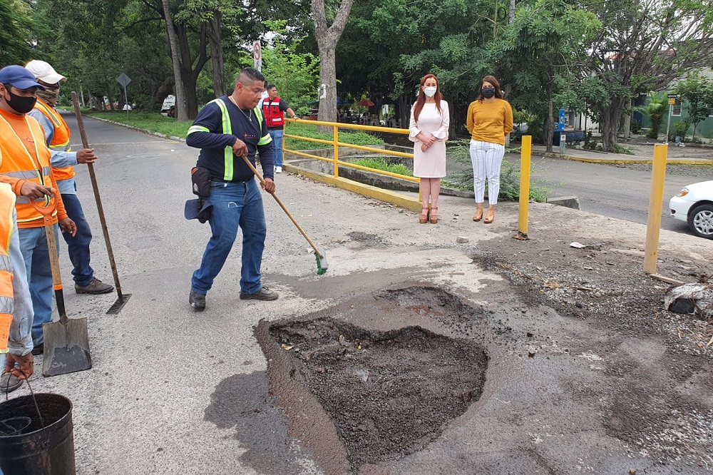 Acompañada por regidoras, regidores y funcionarios de la comuna villalvarense, la alcaldesa explicó que la parte inicial de “La Villa es… no más baches”, consiste en la realización de trabajos de bacheo en las principales calles y avenidas de la ciudad.