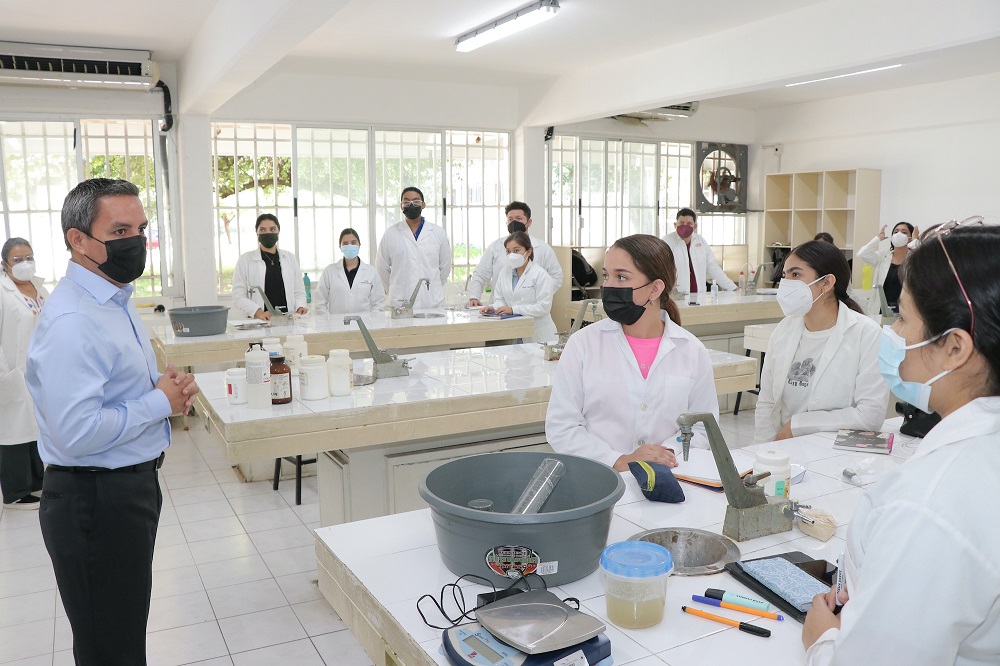 A su paso por salones y laboratorios, el rector se presentó y saludó a los estudiantes que se encontraban haciendo sus prácticas o tomando clases, dándoles la bienvenida a la Universidad de Colima: “nos da mucho gusto tenerlos de nuevo en la Universidad y que puedan ya incorporarse a las actividades presenciales. Quiero decirles que el que cumplan con el protocolo de seguridad es importante, ya que nos permitirá paulatinamente que más compañeros de ustedes puedan irse incorporando”.