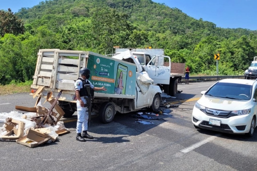 El percance se suscitó cuando una camioneta tipo pick-up estaquitas y una camioneta doble rodado se impactaron de frente al transitar por dicha carretera, en donde perdió la vida el conductor de la camioneta perteneciente a la tienda departamental ‘La Marina’, mientras que el copiloto fue trasladado de urgencia a recibir atención médica en estado grave.