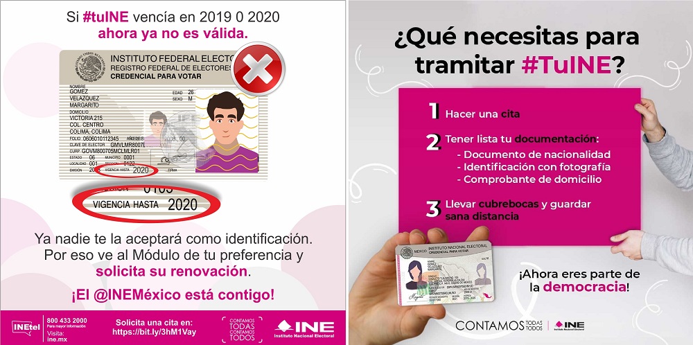 Igualmente, Naranjo Llerenas señala que, para identificar si la Credencial está vigente o no, se debe revisar la parte inferior del anverso de su INE y si el año es 2019 o 2020, deben ser renovadas.