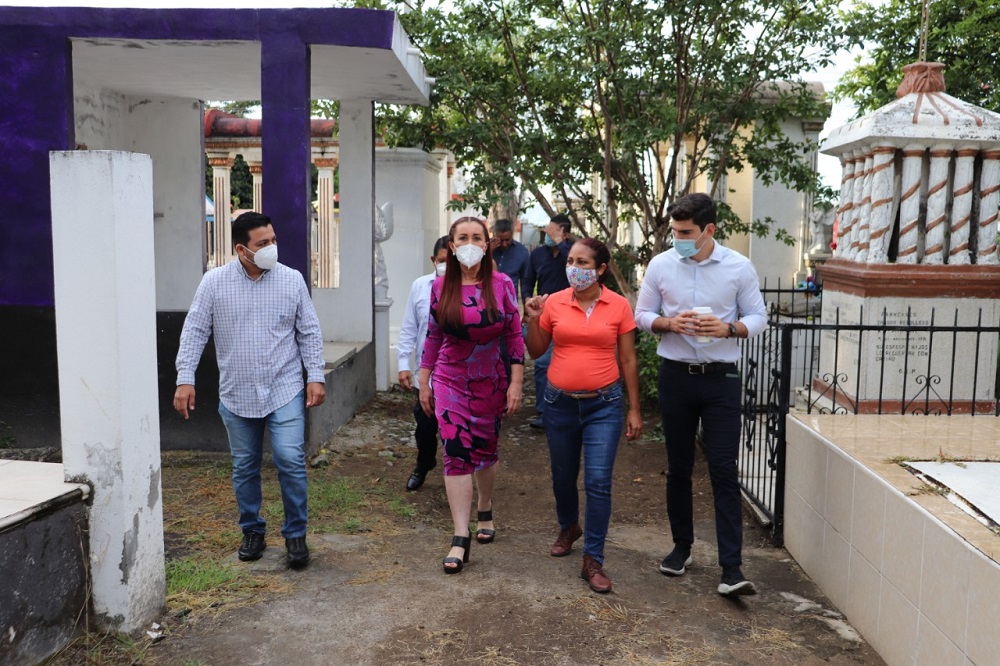 La Presidenta Municipal estuvo acompañada por el Síndico José Santos Dolores, la Regidora Sofía Peralta, los Regidores Adrián López, Sergio Rodríguez y Roberto Sánchez, por funcionarios de la Dirección General de Planeación de Desarrollo Municipal y por Anahí Rodríguez Melo, Administradora del Panteón.