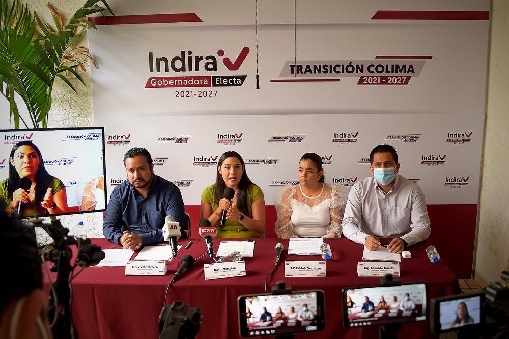 Acompañada por Fabiola Verduzco Aparicio, Eduardo Jurado Escamilla y Víctor Torrero Enríquez, integrantes del equipo de Transición Colima, la gobernadora electa expuso que si bien el avance del proceso de entrega-recepción es de un 70 por ciento, hay rubros en el sistema, de los que el gobierno saliente no ha publicado la información y por lo tanto se desconoce. Reiteró su compromiso con la sociedad colimense de que se hará una revisión profunda de la situación financiera del estado, aseveró que una vez iniciando su gobierno se transparentará e informará lo que está sucediendo, pues encabezará un gobierno que se regirá “por la honestidad, la transparencia, la austeridad y el compromiso con Colima”.