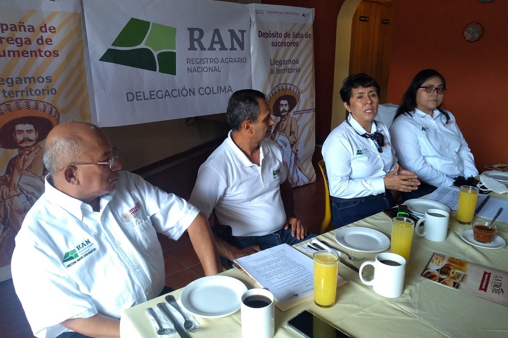 La delegada del RAN Colima agregó que la prioridad es la atención humana por lo que se realiza la Campaña Nacional de entrega de Documentos Agrarios en el que se acercan a los núcleos agrarios para evitar el traslado de usuarios a oficinas, esto es para protegerlos de salud al no exponerlos a aglomeraciones y largos traslados.