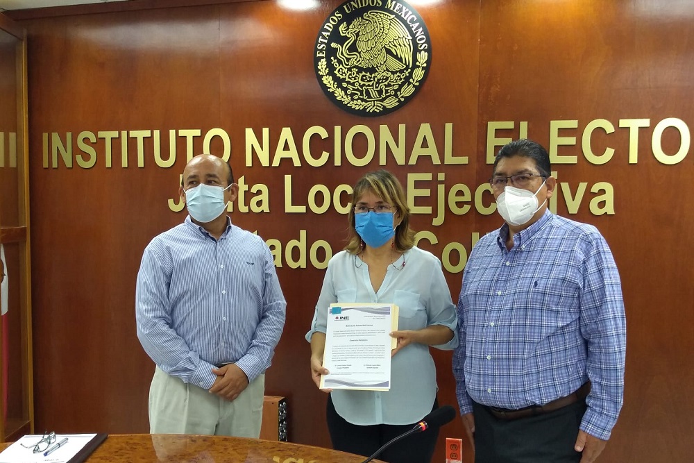 En una breve ceremonia celebrada este miércoles en las instalaciones de la Junta Local Ejecutiva del INE Colima se hizo entrega a María Elena Adriana Ruiz Visfocri la Constancia que la acredita como nueva Consejera Presidenta del Consejo General del Instituto Electoral del Estado de Colima, la cual fue emitida por el Consejo General del Instituto Nacional Electoral.