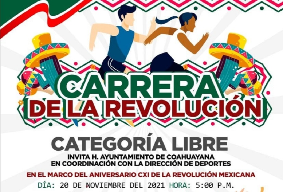 Coahuayana, Mich. El Gobierno Municipal que preside Gil Ruiz, a través de la Dirección de Deportes, invitan a todos los deportistas hombres y mujeres del municipio, a la gran carrera del CXI Aniversario de la Revolución Mexicana, misma que se correrá el 20 de noviembre en punto de las 17 horas en la categoría libre teniendo como punto de salida el Crucero de El Ticuiz, desde donde se recorrerán las principales calles y avenidas de los pueblos de El Ranchito y Coahuayana de Hidalgo, para terminar en la explanada municipal donde se instalará la meta.