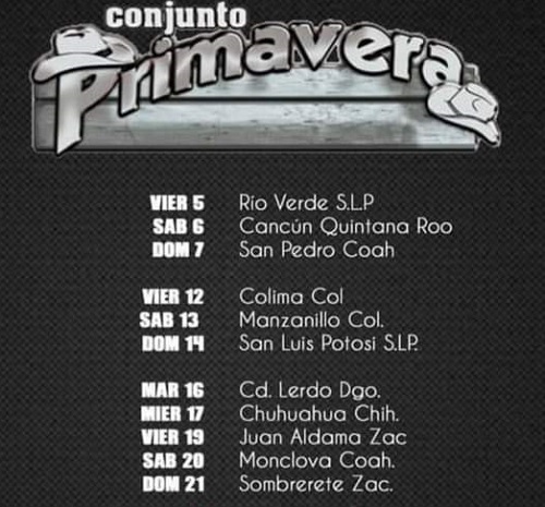 La agrupación musical Conjunto Primavera confirmó su presentación para este próximo 12 de noviembre en la plaza de Toros Almoloyan de Colima.
