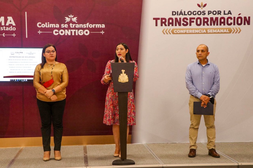 Acompañada de la Secretaria General de Gobierno, Ma. Guadalupe Solís Ramírez, y Manuel Llerandi Ruiz, Secretario de Seguridad Pública, la titular del Ejecutivo estatal explicó que para mejorar dicha estrategia, desde el pasado lunes se retomó de manera diaria y presencial la “Mesa Estatal para la Construcción de la Paz y la Seguridad”, que a raíz de la pandemia se hacían eventualmente y de manera virtual.