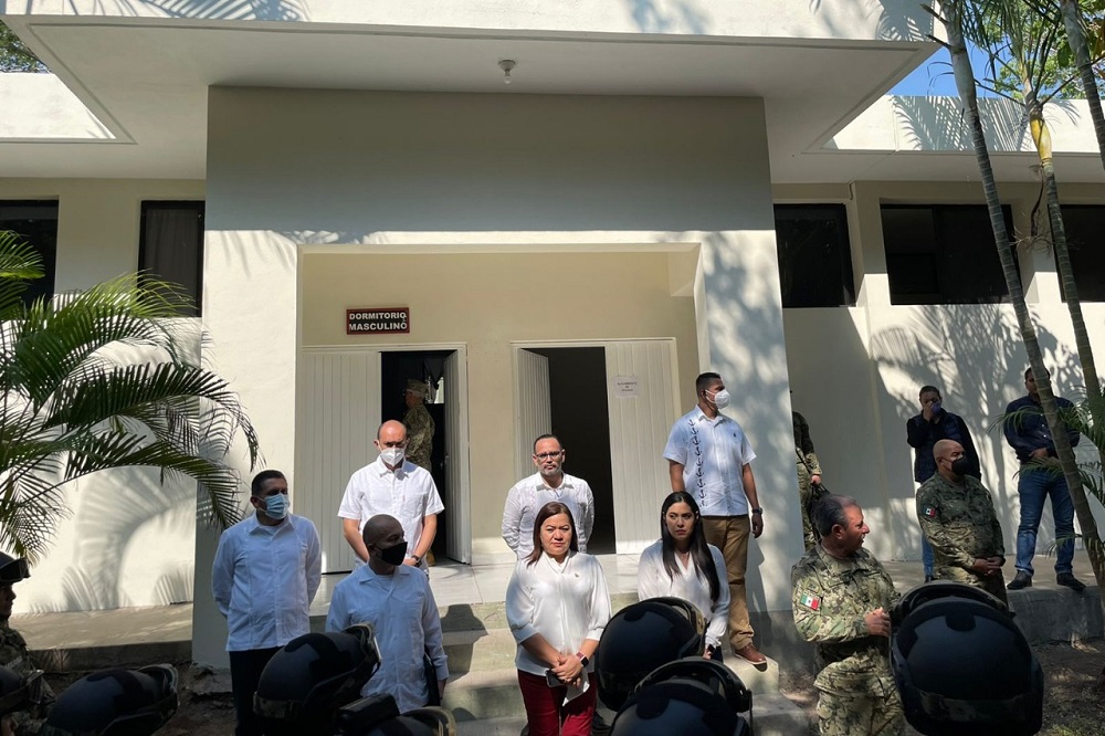 La gobernadora Indira Vizcaíno Silva y el Secretario de Marina del Gobierno de México, Almirante José Rafael Ojeda Durán, realizaron una visita de supervisión a las instalaciones de la ex Zona Militar que albergan a más de 200 integrantes de la Marina, que llegaron esta semana a nuestra entidad para reforzar las labores de seguridad con elementos de la policía como autoridad coadyuvante.