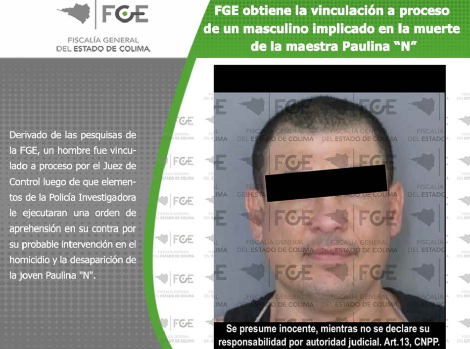 Derivado de las pesquisas de la Fiscalía General del Estado (FGE), un hombre fue vinculado a proceso por el Juez de Control luego de que elementos de la Policía Investigadora le ejecutaran una orden de aprehensión en su contra por su probable intervención en el homicidio y la desaparición de la joven Paulina "N".