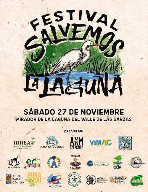 El próximo sábado 27 de noviembre, diversos colectivos, realizarán el Festival “Salvemos a la Laguna”, con el propósito de crear conciencias a favor del cuidado de la flora y fauna que alberga la laguna del Valle de las Garzas en Manzanillo.