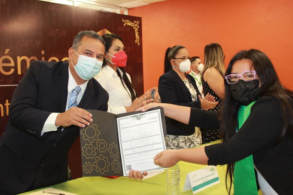 Comentó que los nuevos procesos de elaboración de los títulos, la pandemia y otros factores más, contribuyeron al rezago de entrega de títulos, “hoy podemos decir, que estamos resolviendo la entrega de títulos y cédulas, llevando la responsabilidad en cada uno de los egresados para poner muy en alto esta Universidad que, a pesar de ser joven, a 13 años de haberse fundado ha presentado un gran crecimiento”, apuntó.