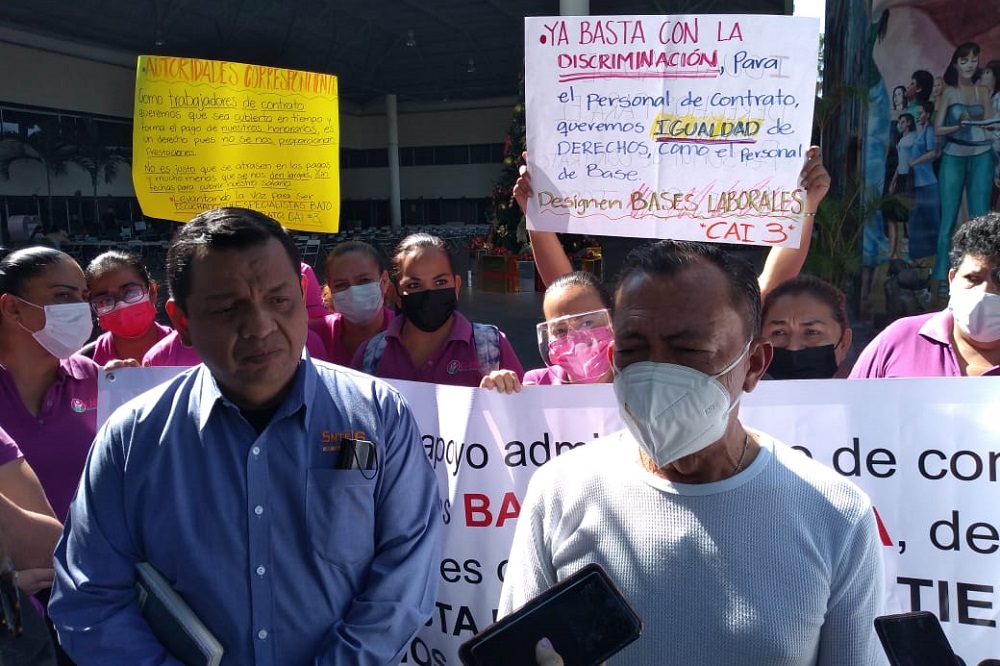 Indicó que además vienen a exigir que den fecha de pago de aguinaldo, “porque siempre sucede que los aguinaldos se retrasan y no tienen fecha exacta de cuando se les paga y les causa incertidumbre laboral y económica; el pretexto es que aún no se mandan los convenios y se deben recabar, pero ellos vienen a exigir que no se paguen el pago en esos tres meses”.