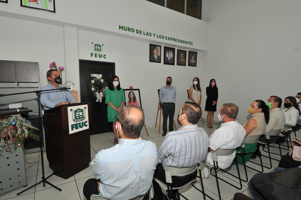“El día de hoy -finalizó- al honrarnos colocando nuestras fotografías en el muro de expresidentes y ex presidentas, refrendamos el vínculo indisoluble de nosotras para con la FEUC y la Universidad de Colima, el gran compromiso de representar siempre desde nuestra organización, como egresadas, dignamente a la institución, así como defender su autonomía y su legado en un acto de reciprocidad y agradecimiento”.