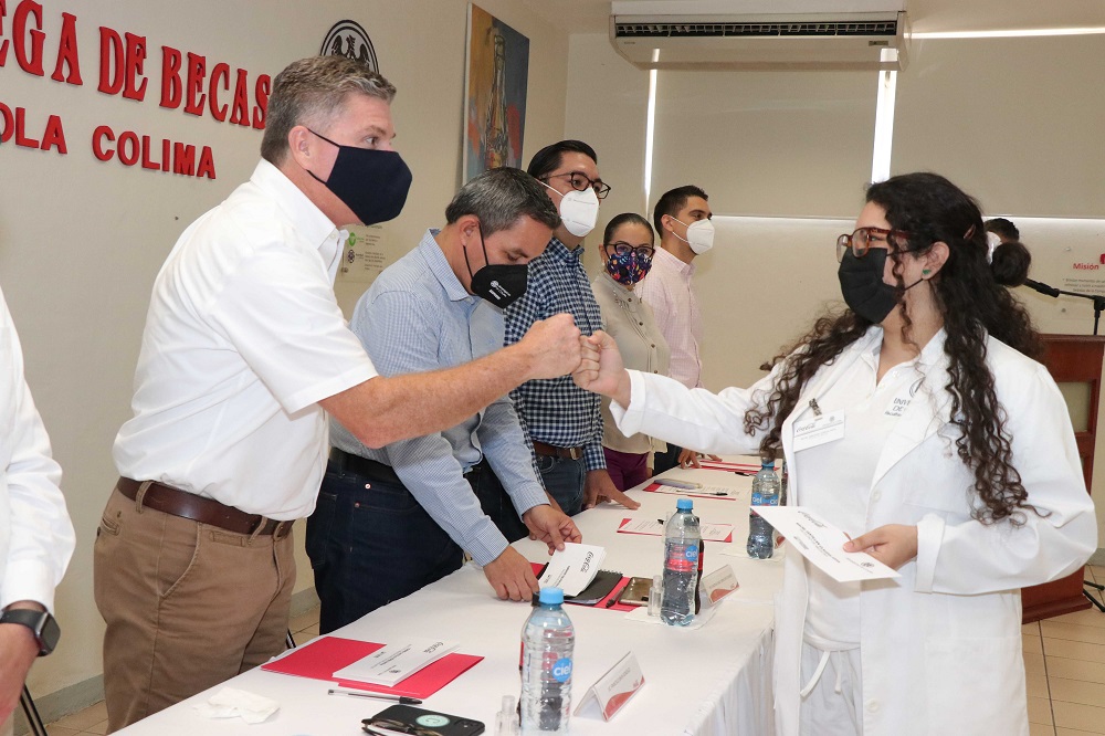 Durante la ceremonia número 40 de entrega de las becas Coca Cola Colima, presidida por Francisco Brun González, director adjunto de esta embotelladora en el estado y por el rector de la Universidad de Colima, Christian Jorge Torres Ortiz Zermeño, se otorgaron de manera presencial 22 apoyos, de un total de 200, a estudiantes de diversas licenciaturas de esta casa de estudios.