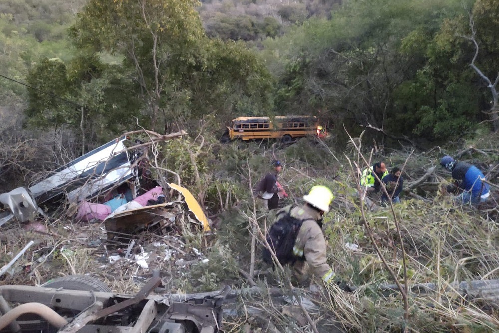 Los hechos ocurrieron en la zona conocida como Cuesta de Sayula, en donde un camión que transportaba jornaleros se impactó de frente con una camioneta, debido al choque, ambos vehículos caen hacia un barranco, resultando 27 personas lesionadas.