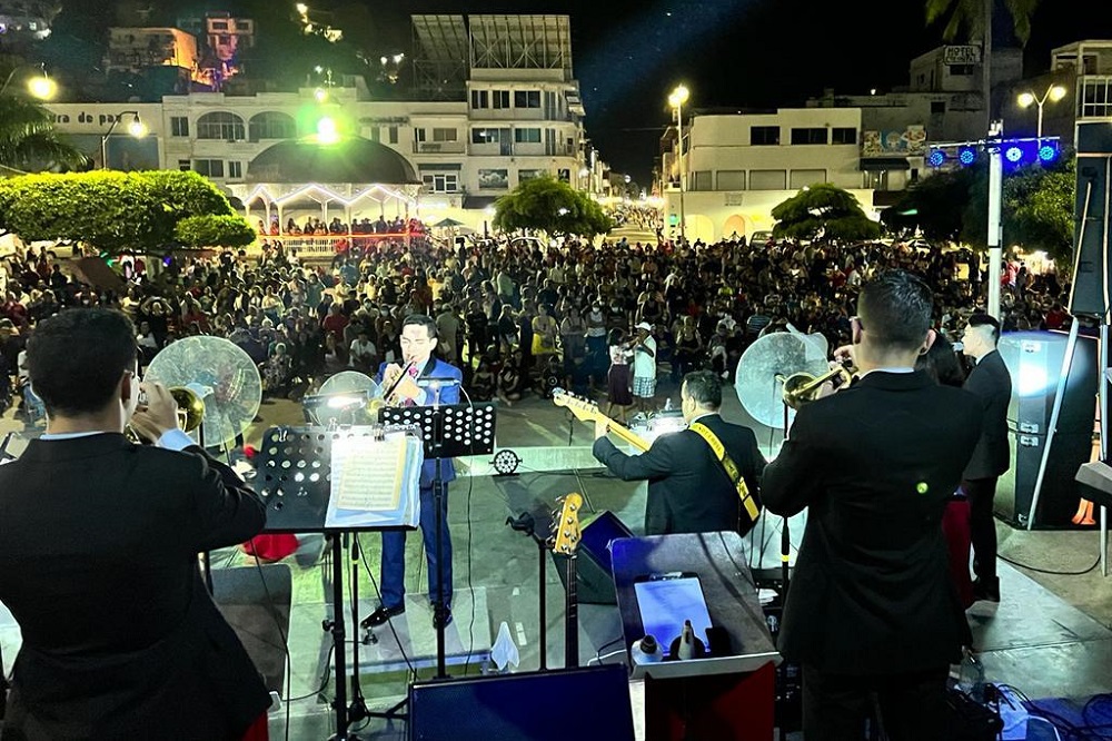 En la explanada del Pez Vela, el Ayuntamiento de Manzanillo organizó eventos musicales y la presentación de la gran orquesta “Colorado Naranjo”, que amenizó la velada hasta llegar a la media noche.