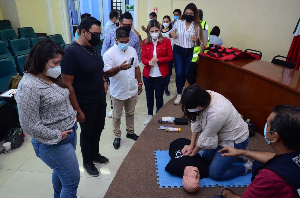 Como parte de las acciones de la Semana Municipal de Protección Civil que implementa el Ayuntamiento de Colima a través de la Coordinación Municipal de Protección Civil, se dio inicio con la capacitación institucional para la prevención y atención de emergencias, instruida por la presidenta, Margarita Moreno, y en el que se contó con la participaron activa de regidoras y regidores.