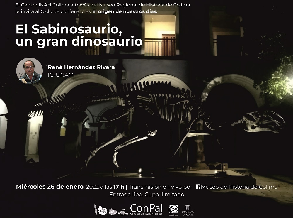 El paleontólogo René Hernández, del Instituto de Geología de la UNAM dará la apertura a este ciclo con la conferencia El sabinosaurio, un gran dinosaurio, en transmisión en vivo a través de la página oficial del Museo Regional. Para el especialista la importancia de la investigación paleontológica radica en descubrimiento y conocimiento de nuestras raíces y pasado, ya que refiere que no conocer nuestros orígenes es como tener un árbol sin raíces.