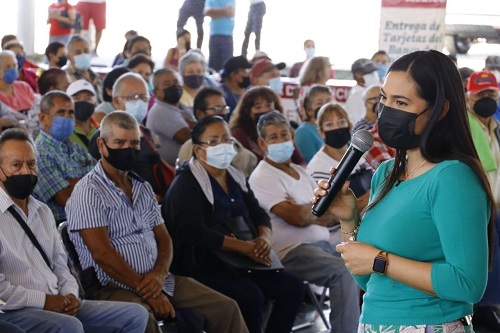Al asistir a la entrega de tarjetas bancarias a 646 beneficiarias y beneficiarios de la Pensión para el Bienestar de Personas Adultas Mayores de Villa de Álvarez, organizada por la Delegación de Programas para el Desarrollo del Gobierno de México, la gobernadora Indira Vizcaíno Silva invitó a las y los presentes a fomentar entre sus familiares y conocidos la aplicación de la vacuna contra el Covid-19 y la importancia de cuidarse entre todas y todos.