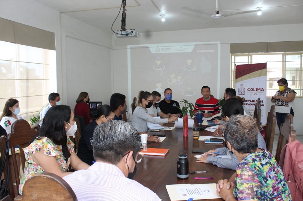 En esta reunión dirigida por Andrés Trujillo Fajardo, director general de Vinculación Social y Prevención del Delito de la Secretaría de Seguridad Pública (SSP), participó el encargado de Prevención del Delito en el municipio, Johan Manuel Rincón; la coordinadora de Vinculación Social y Prevención del Delito de la Guardia Nacional en Colima, Claudia Nava Camberos y la coordinadora de la Unidad de Género de la SSP, Nadia Liliana Guerrero Magaña.